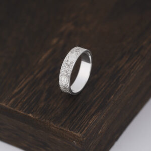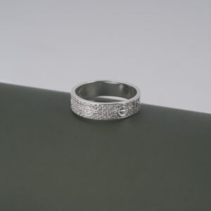 Chiếc nhẫn Cartier’s, LOVE ring, Small Model, Paved này là sự kết hợp hoàn hảo giữa thiết kế táo bạo và sự sang trọng vượt thời gian. Thân nhẫn được đính kín đá cubic zirconia lấp lánh, tạo hiệu ứng ánh sáng rực rỡ. The screw motifs, ideal oval shape and undeniable elegance establish the piece as a timeless tribute to passionate romance.