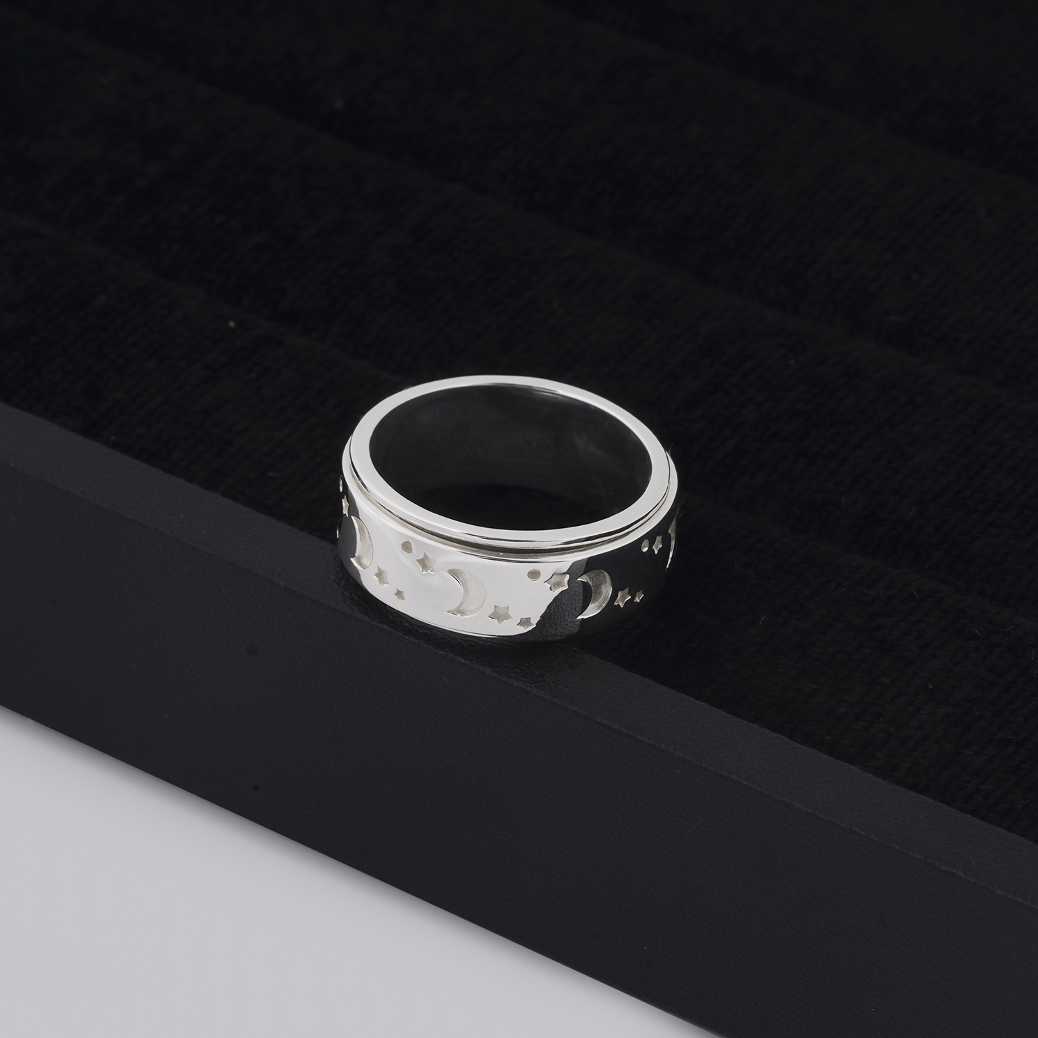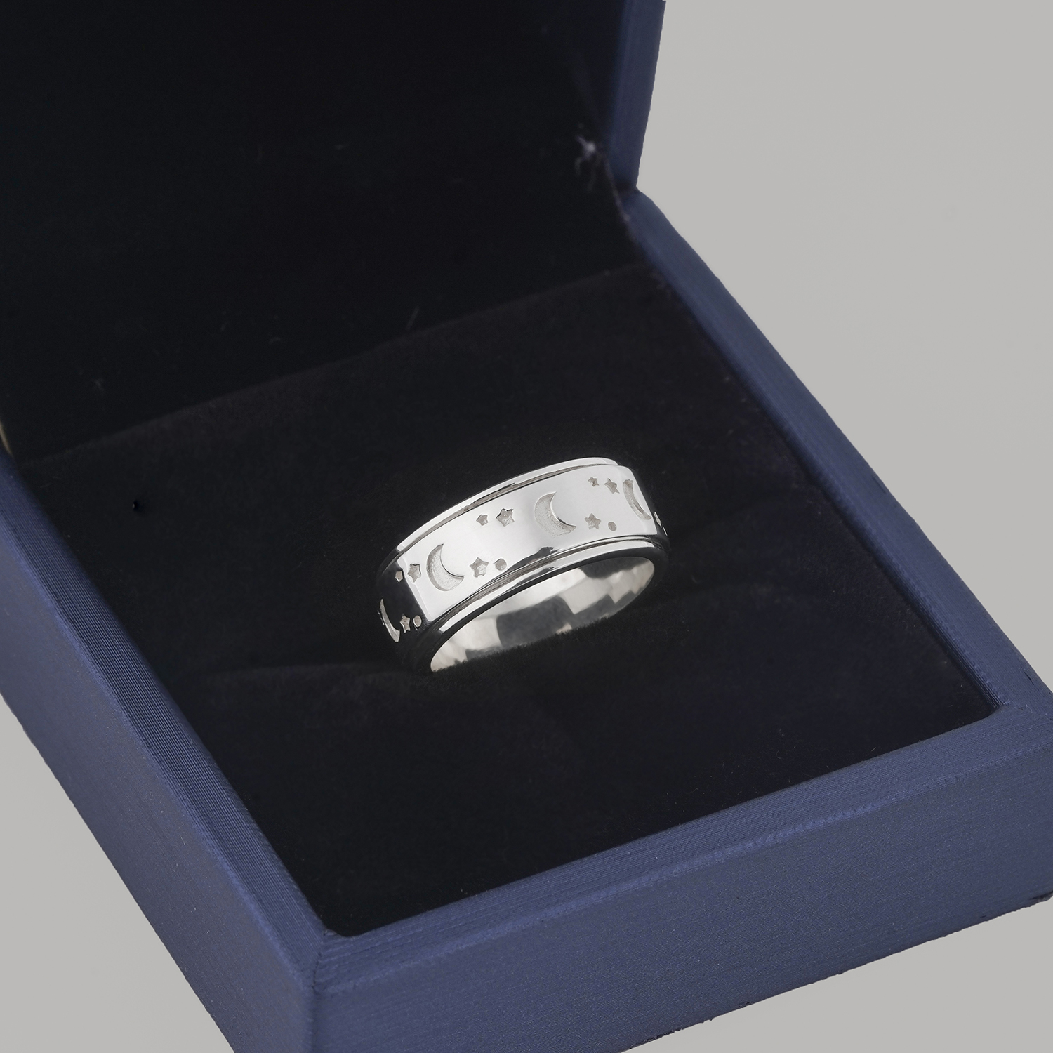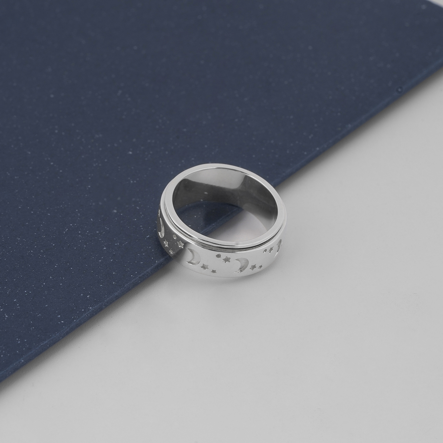 Bạn đang tìm kiếm một món trang sức tinh tế, độc đáo và an toàn cho làn da thì chiếc nhẫn Moon Star Celtic Stress Rings này sẽ là điểm nhấn hoàn hảo cho phong cách của bạn. Mẫu nhẫn này được thiết kế tinh xảo, họa tiết mặt trăng và ngôi sao khắc nổi trên bề mặt mang vẻ đẹp huyền bí, lãng mạn, phần giữa nhẫn có thiết kế xoay linh hoạt giúp bạn giải tỏa căng thẳng một cách thú vị.