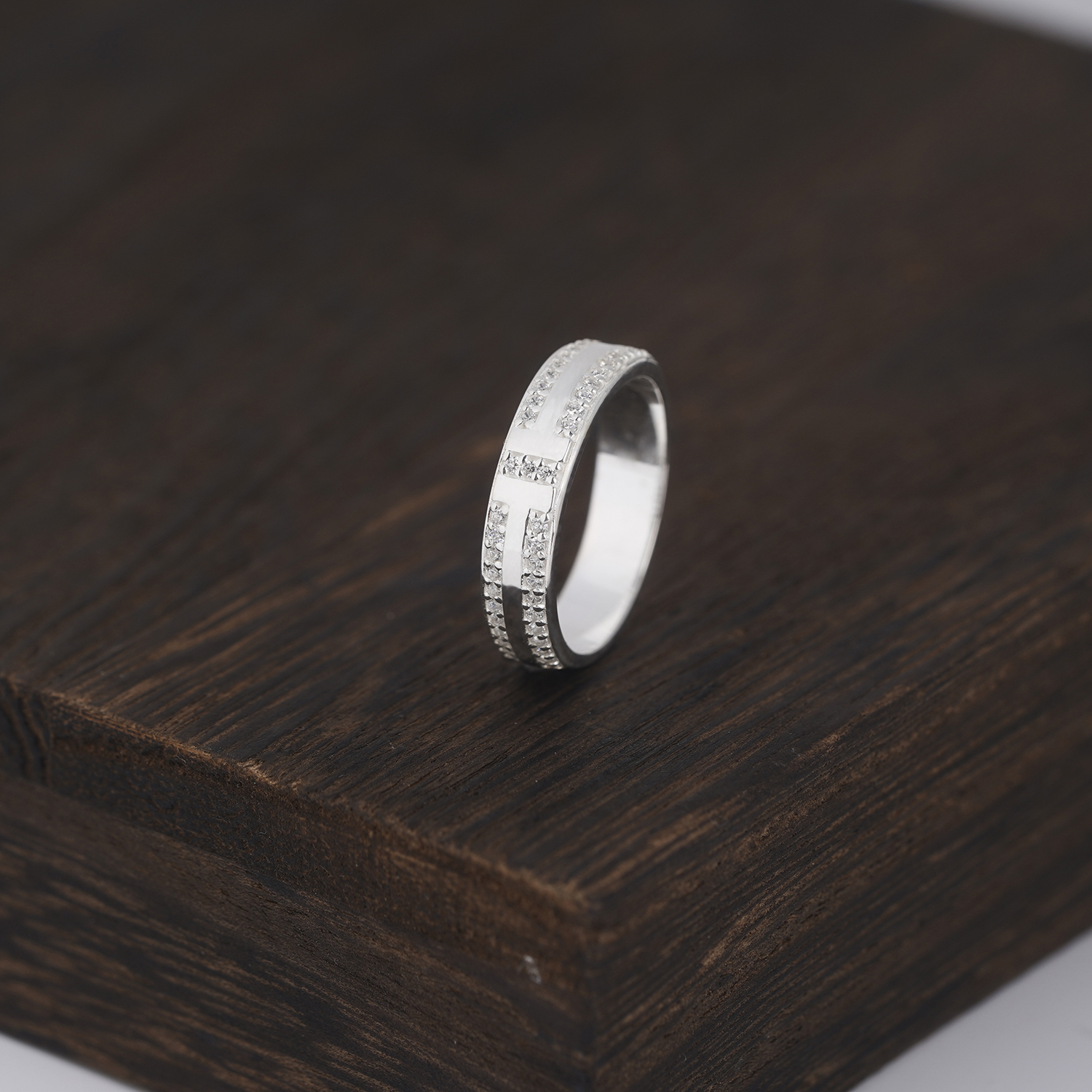 - Thiết kế: Chữ “T” đính đá, thân nhẫn đính hai hàng đá lấp lánh