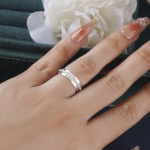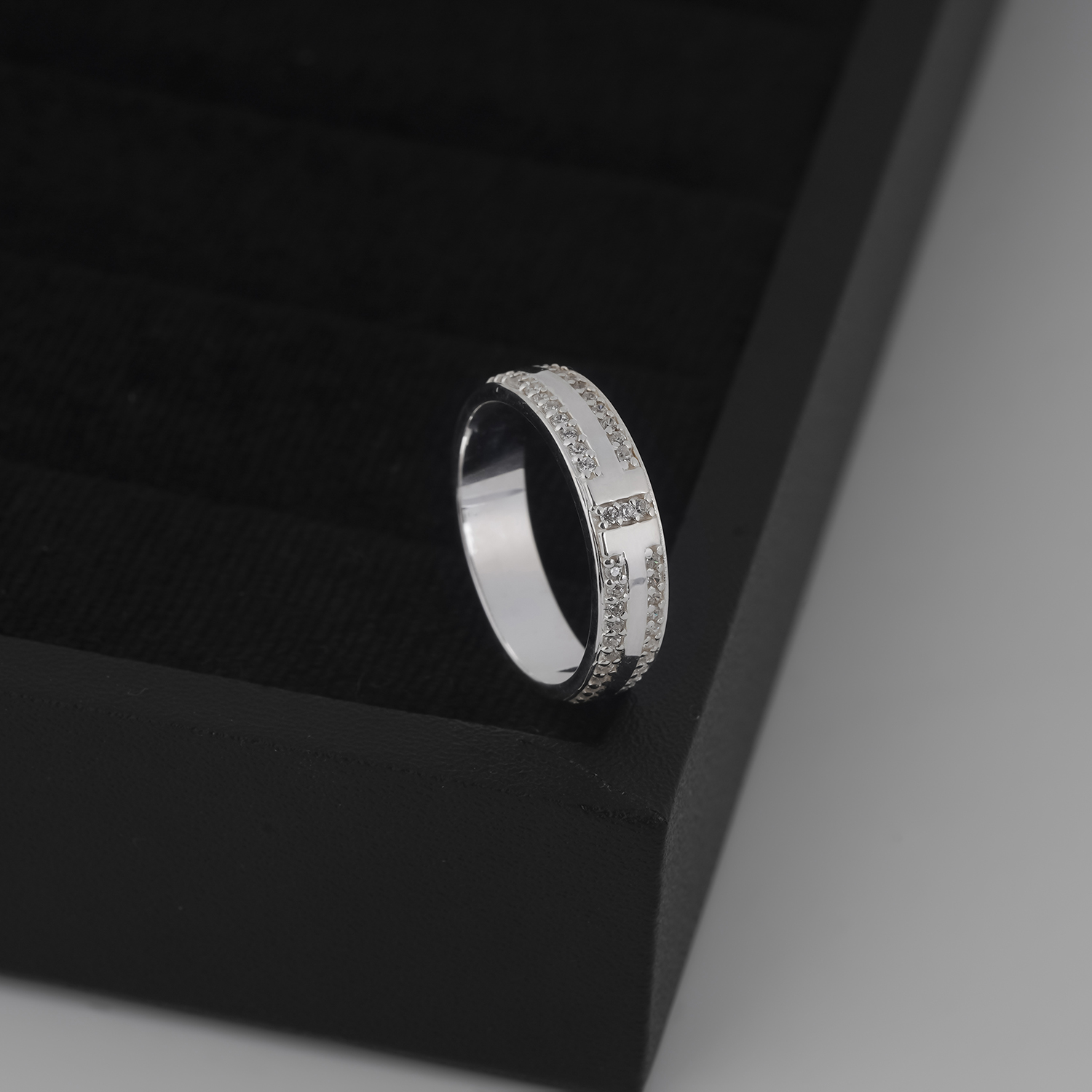 Chiếc nhẫn T Wide Stone này là biểu tượng của sự thanh lịch và hiện đại, với thiết kế chữ “T” nổi bật được đính đá tinh xảo ở trung tâm. Thân nhẫn được bao quanh bởi hai hàng đá cubic zirconia lấp lánh, tạo nên vẻ đẹp hài hòa và sang trọng.
