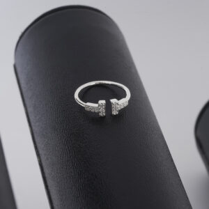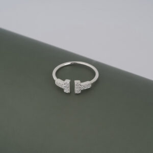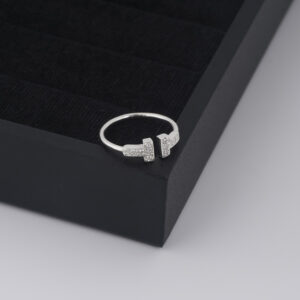 Chiếc nhẫn Tiffany T Wire Ring này nổi bật với thiết kế chữ “T” độc đáo, mang phong cách hiện đại và thanh lịch. Hai thanh chữ “T” được đính đá cubic zirconia lấp lánh, tạo điểm nhấn rực rỡ trên thân nhẫn mảnh mai, mang lại cảm giác nhẹ nhàng nhưng không kém phần sang trọng.